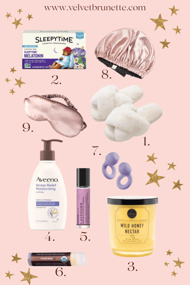 Do your skincare, brush your hair, apply vanilla lip balm, and dab on some lavender oil (helps me with anxiety). Slip on a silk bonnet to protect your hair overnight.